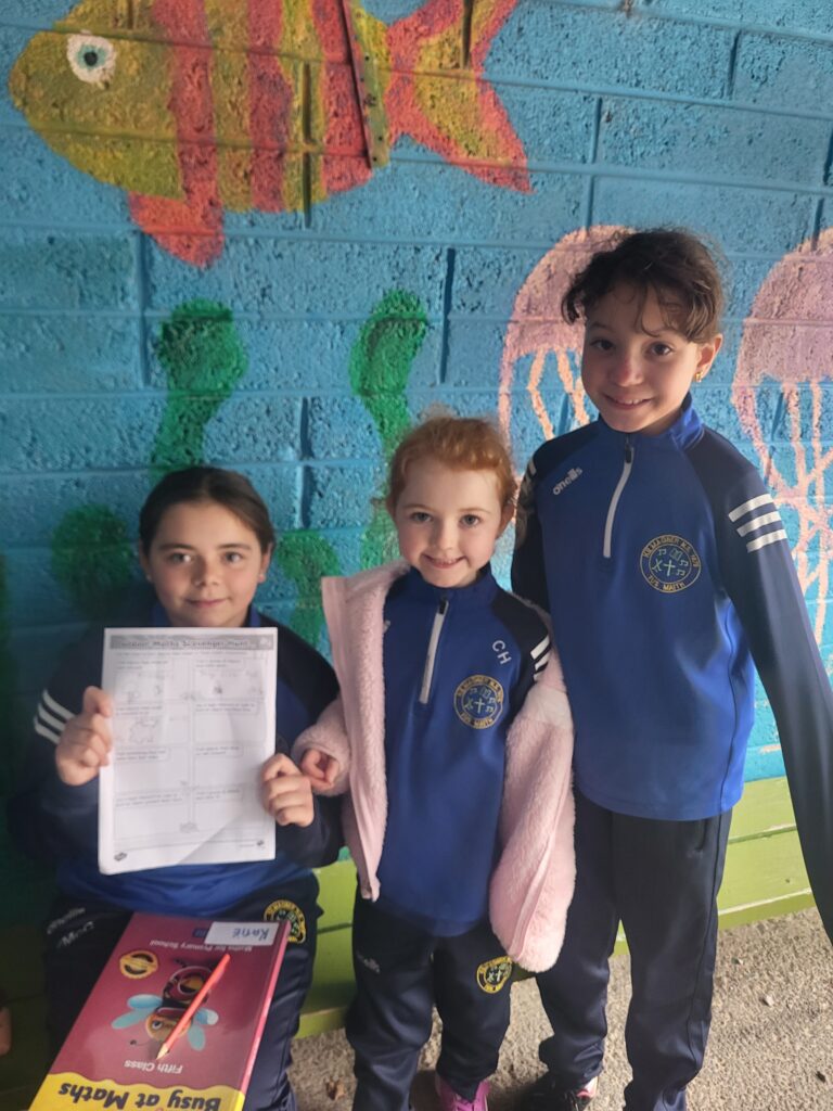 To celebrate Maths Week, our classes enjoyed an exciting Outdoor Maths Scavenger Hunt. Working in groups, older pupils supported younger pupils as they tackled a range of fun challenges. Using our “Maths eyes”, we searched the playground, field and school garden for shapes, patterns, number and measurements hidden all around us. It was a brilliant blend of teamwork, problem-solving and outdoor learning.
